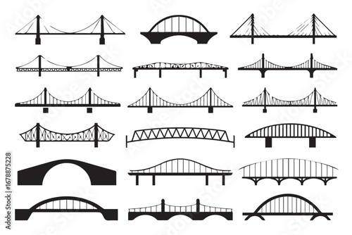 bridge illustration set 18 outline silhouettes suspension arch truss beam cablestayed minimal monochrome design