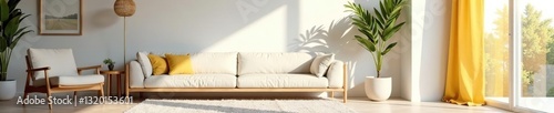 Bright, airy minimalist living room with natural light, minimalism, design, calm