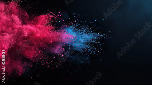 Bright and bold powder explosion in vibrant pink and blue colors against dark background, creating dynamic and energetic visual effect