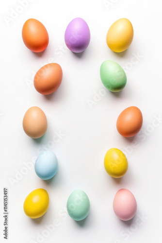 Bright and colorful Easter eggs on a white background. Perfect for festive and holiday-themed designs