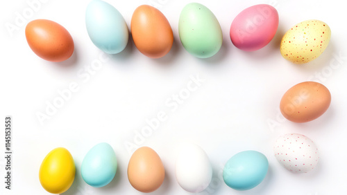 Bright and colorful Easter eggs on a white background with space for text. Perfect for festive and holiday-themed designs