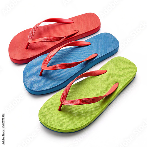 "Bright and Colorful Flip-Flops in Red, Blue, and Green, Summer Footwear for Comfort and Style"