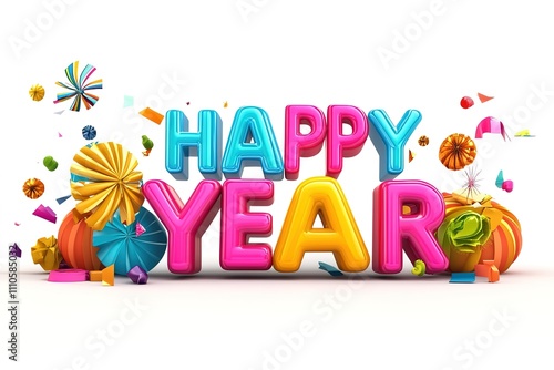 Bright and festive 'Happy New Year 2025' design featuring colorful fireworks, sparkles, and a celebratory theme. Perfect for holiday greetings, New Year's Eve invitations, and festive decor.