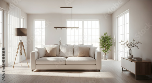 Bright and inviting modern living room with natural light and comfortable furnishings.