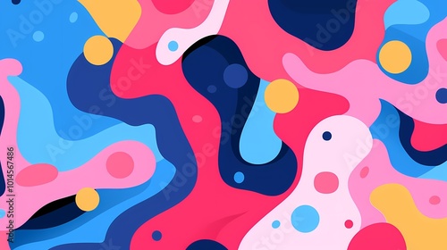 Bright and playful abstract design with vibrant colors and fluid shapes.