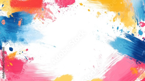 Bright and playful abstract frame with brush strokes and colorful splatters