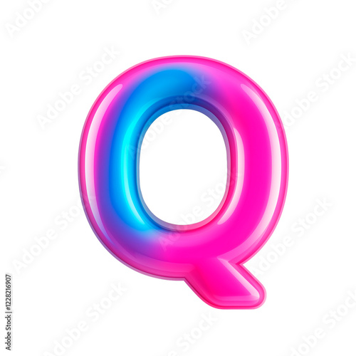 Bright and smooth pink and blue letter Q with vibrant colors and a glossy finish