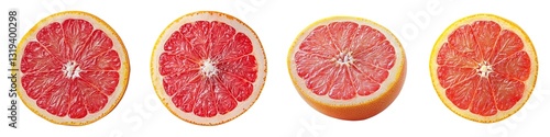 Bright and Vibrant Grapefruit Halves with Juicy Red Pulp Isolated on Transparent Background