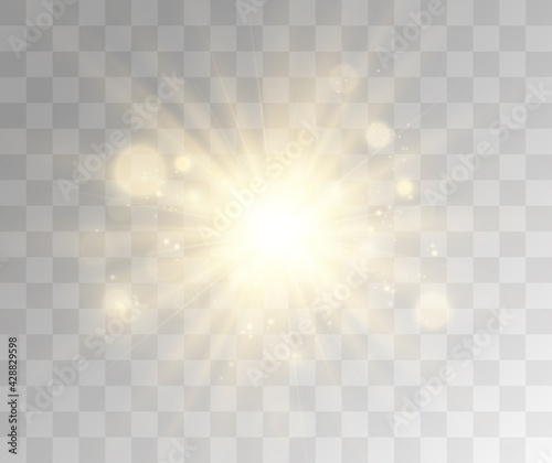 Bright beautiful star.Vector illustration of a light effect on a transparent background.