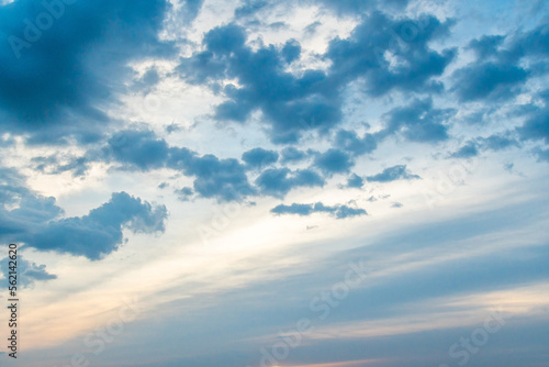 Bright blue cloudy sky over the yellow desert of Kyzylkum Kazakhstan