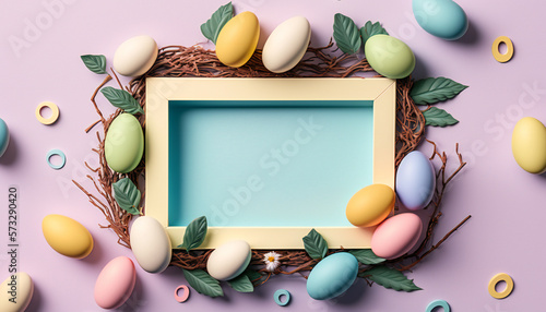 Bright Blue Easter background template with Easter eggs - Greetings and presents for Easter Day - Copy Space - Generative AI