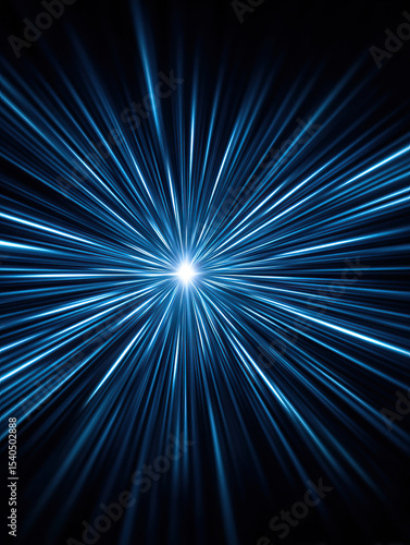 Bright blue light rays radiate from central point in dynamic burst, creating futuristic and energetic visual effect on dark background