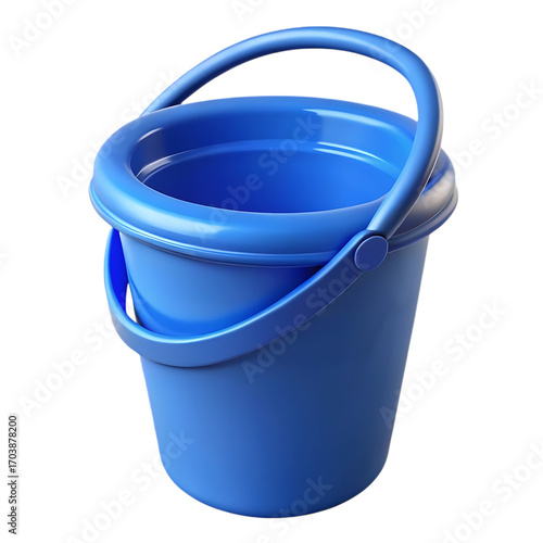 Bright blue plastic bucket with a sturdy handle isolated on a plain background for various uses