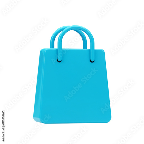 Bright Blue Shopping Bag Icon Digital Design Modern Style 3D Render Retail Symbol Online Simple