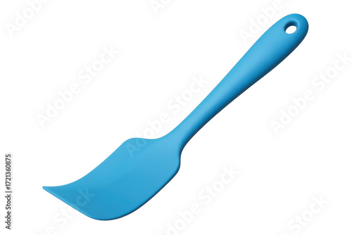 Bright blue silicone spatula, isolated on transparent background, for baking