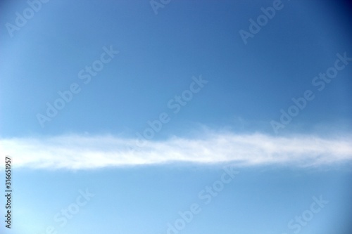 bright blue sky and a strip of clouds horizontally. spring, blue sky with a thin strip of clouds