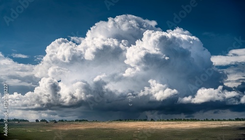 Bright blue sky with towering cumulonimbus clouds in the daytime
