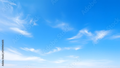 Bright blue sky with white clouds create a beautiful, clear cloudscape in the sunny summer air