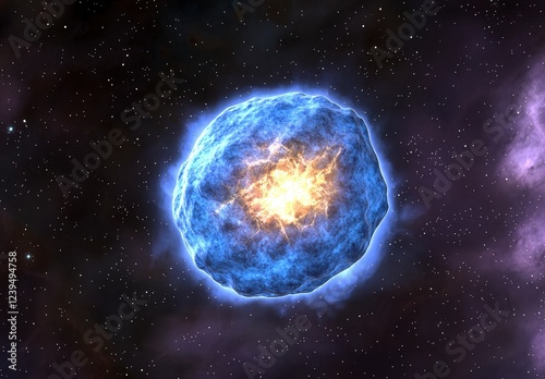 Bright Blue Star with Fiery Explosion in Deep Space Background