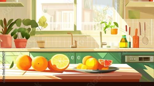 Bright Citrus Fruits in a Natural Kitchen Scene