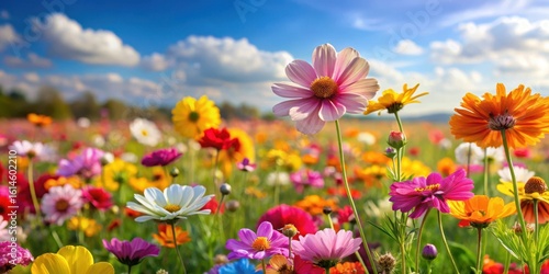 Bright colored flowers in a field