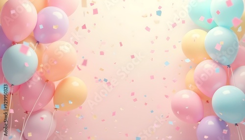 Bright, colorful background with balloons in various shades, perfect for birthday wishes. Providing a clear space for text, the background creates a joyful and festive atmosphere, ideal for invitation