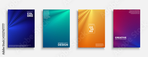 Bright colorful creative covers, templates, posters, placards, brochures, banners, flyers and etc. Striped geometric halftone backgrounds with gradient. Digital vibrant tredny design