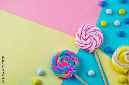 Bright colorful sweet lollipops and candies background