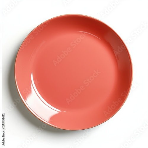 Bright coral-colored dinner plate with a modern touch isolated on white