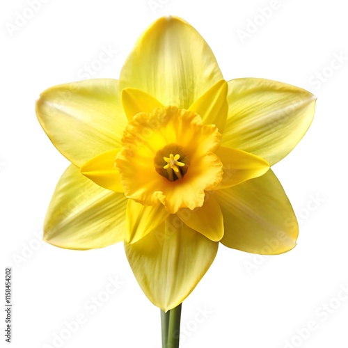 Bright Daffodil with Sunny Yellow Petals - Isolated on White Background