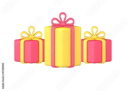 Bright festive package cardboard gift boxes different shapes for congratulations birthday 3d icon