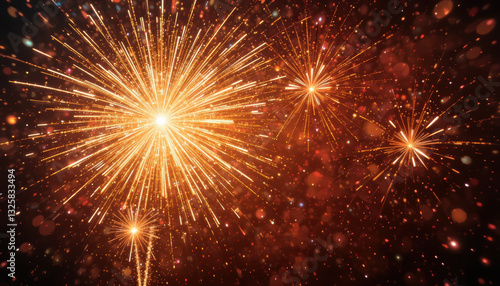 Bright fireworks burst in night sky, creating dazzling display of light and color