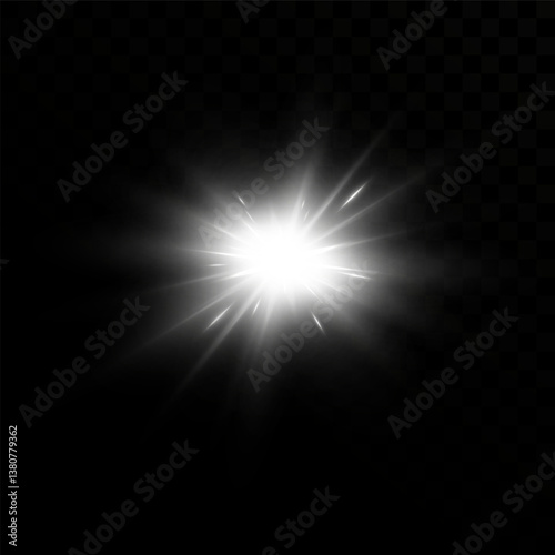Bright flash of light. Glow effect. White light.