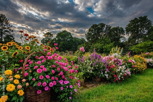 Bright Garden Flowers in Bloom at Twilight – Outdoor Floral Arrangement in Natural Light