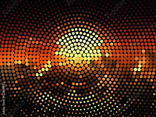Bright glowing circles on dark background. Halftone effect. Abstract geometric pattern. Scalable vector graphics