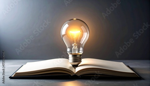 Bright glowing lightbulb on open notebook symbolizing creativity, inspiration, and new ideas