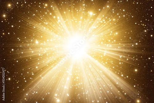 Bright Golden Explosion of Light on Dark Background, Radiating Energy and Sparkles, Depicting Cosmic Phenomenon and Celestial Beauty in Stunning Visuals