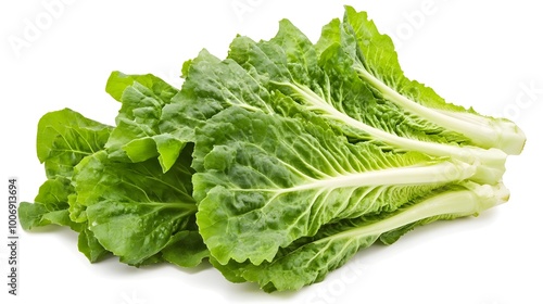 Bright Green Crisp Romaine Lettuce Leaves Isolated on White Background with Copy Space