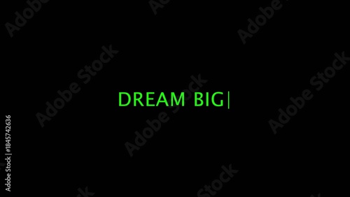 Bright green dream big text centered on a Generate title without using the word "Title:" before it. black background with minimalistic