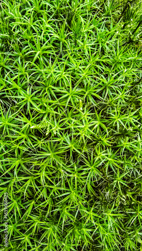 Bright green moss texture close-up. Natural plant background for design and decoration.