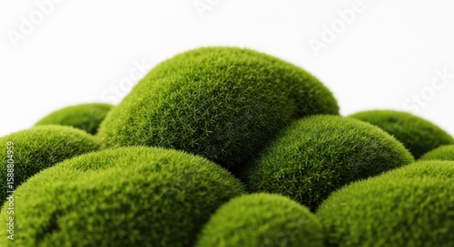 Bright Green Mossy Rounded Boulders Close Up in Natural Setting