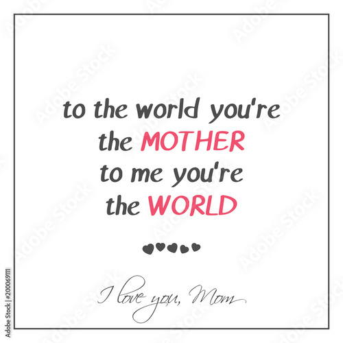 Bright greeting card in minimalist style for Mothers day. Modern badge or label with message I love you mom. Vector illustration for Holiday Collection.