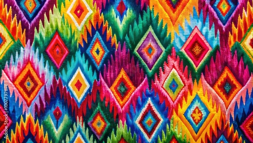 Bright hand-dyed ikat fabric showcases an abstract background and colorful textile design, ideal for inspiring