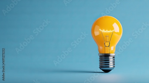 Bright idea glowing yellow light bulb symbolizes innovation and creativity on clean blue background
