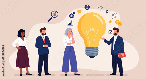 Bright Ideas and Teamwork Diverse Group Brainstorming for Business Success, Innovation, and Problem Solving