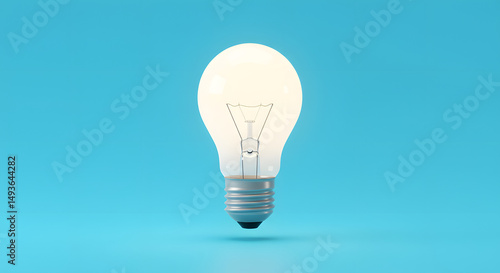 Bright Light Bulb on Blue Background - Idea and Innovation Concept