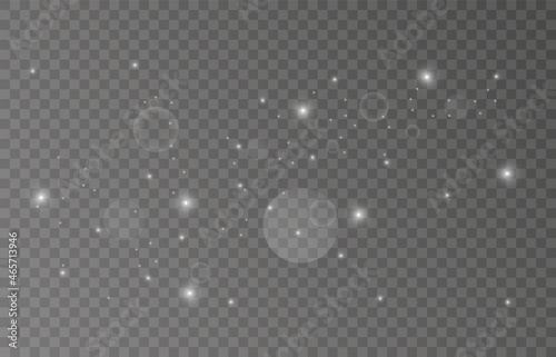 Bright light effect with many glitter particles isolated on transparent background. Vector star cloud with dust. To decorate postcards with congratulations invitations.