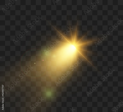 Bright light effect with rays and highlights for vector illustration.