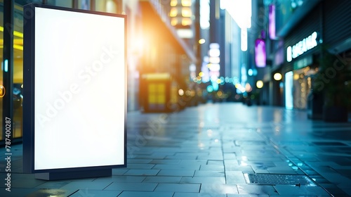 Bright light panel box for billboard or poster advertisement ad space with business alley as background ideal for digital signage video wall or marketing campaign mock up : Generative AI