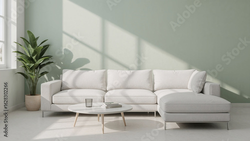 Bright Living Room with White Sectional Sofa and Potted Plant interior